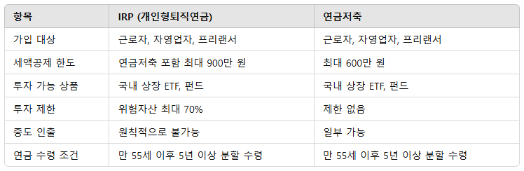✅ IRP vs. 연금저축 비교
