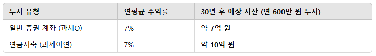 ✔ 장기 유지하면 복리 효과로 수익 극대화 가능 (30년 후 10억 이상 자산 확보 가능!)