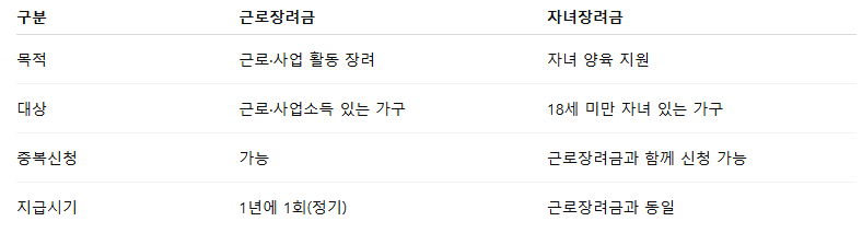 근로장려금은 정부가 직접 지급하는 현금성 지원금으로,