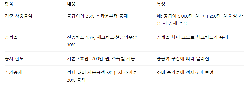 2025년에는 공제율 구조와 추가공제 항목이 일부 개편되어, 카드 소비 패턴을 조정하는 것만으로도 수십만 원 차이가 발생할 수 있습니다.