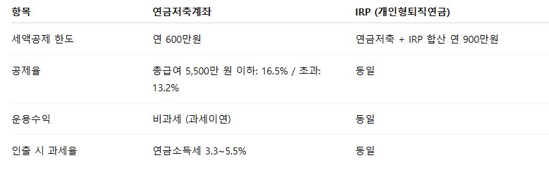“연말정산 연금저축 + IRP 조합”이 가장 효율적인 전략입니다.