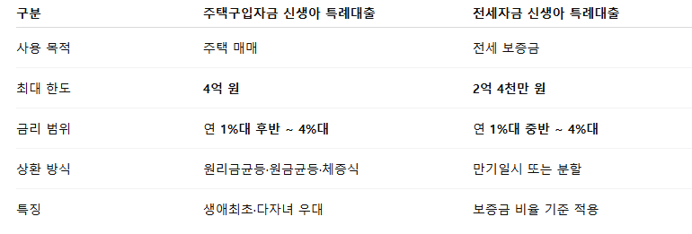 - 주택구입자금 신생아 특례대출: 최대 4억 원